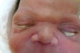 en los primeros 5 días de vida, con secreción purulenta e intensa quemosis.